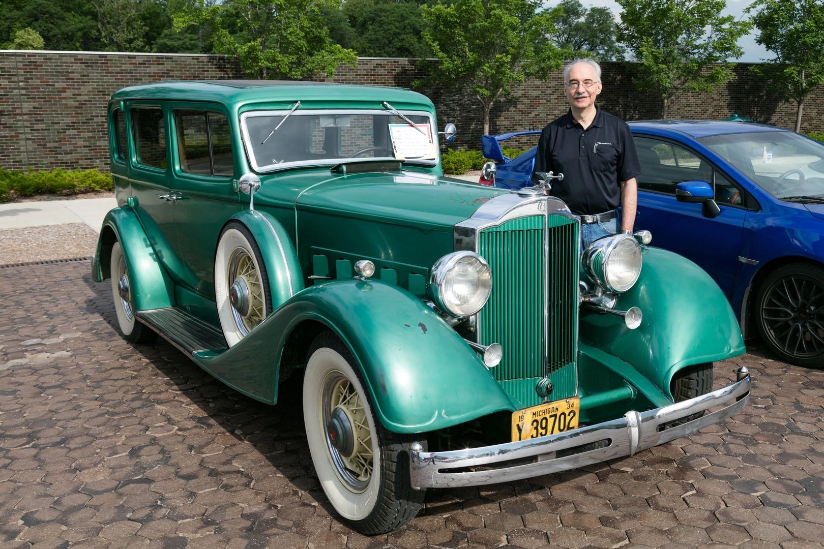 Dave Brigolin with his 1934 Packard on the historic GM Design Center Patio